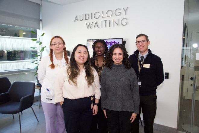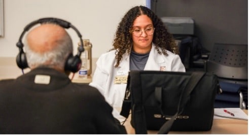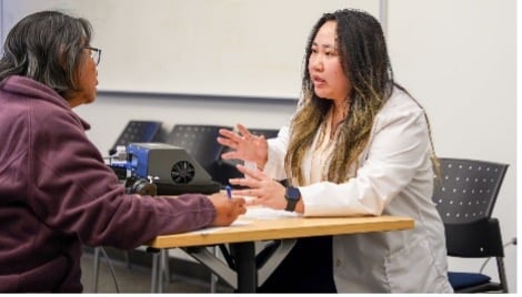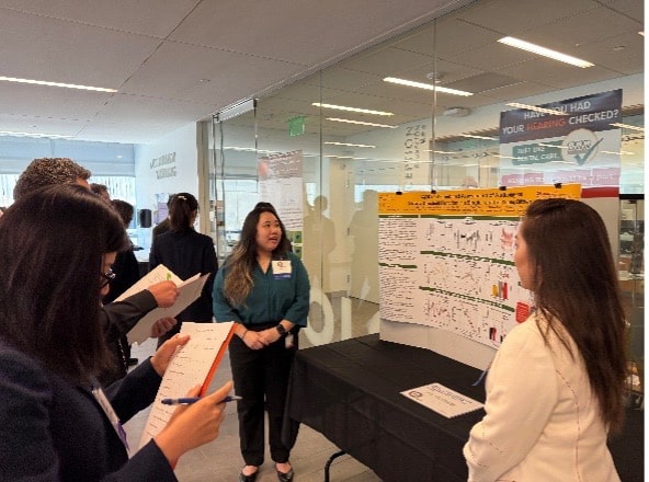In collaboration with the Arthur A. Dugoni School of Dentistry, our audiology students volunteered in the Senior Smiles and Wellness Health Fair. Nearly 150 older adults attended the event at the school’s downtown San Francisco campus, receiving free dental, diabetes, oral cancer, and hearing screenings, along with consultations on balance, flexibility, strength, and fall prevention. The students described the experience as eye-opening, rewarding, and impactful, highlighting its value for both community service and hands-on education in geriatric care.